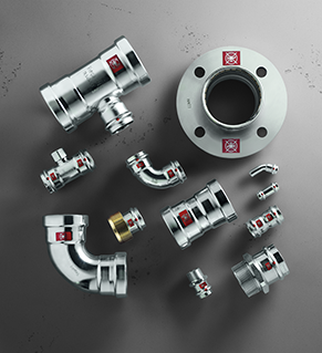 - Wyraźne czerwone oznaczenie na rurach i złączkach zaprasowywanych „Nie nadaje się do instalacji wody użytkowej i pitnej” zapobiega pomyłkom na placu budowy